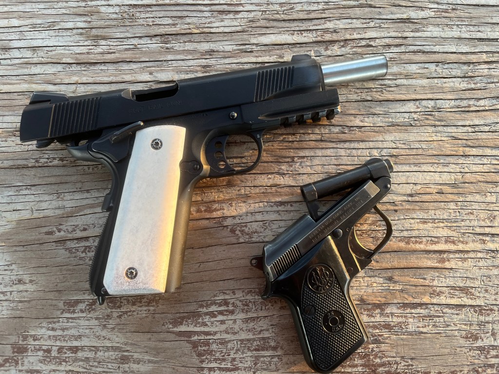 My very first pocket rocket was a Beretta 418 that I picked up more than 25 years ago at a little pawn shop in Gulfport, MS. Turns out, that model was one of the early James Bond guns, before Q equipped him with what, in their words, was a “real man-stopper,” the Walther PPK (LOL). Neat bit of trivia for what turned out to be a rather lackluster little gun, as mine snapped its striker spring shroud a few rounds in, and went belly up until I could find a replacement part. Once I fixed it, I sold it soon thereafter, moving on to bigger and better guns.